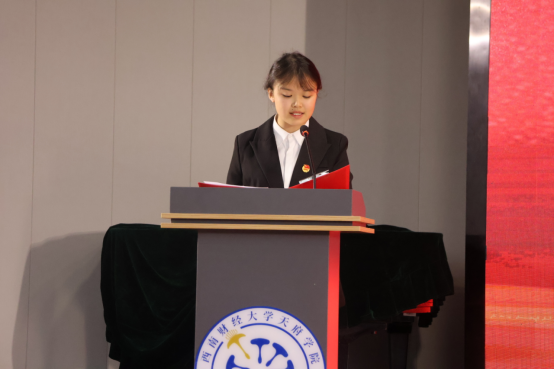 在校歌《美丽的蒲公英》中,五四表彰大会顺利结束。习近平总书记在纪念五四运动100周年大会上的讲话中指出,青年是整个社会力量中最积极、最有生气的力量,国家的希望在青年,民族的未来在青年。下一步,西财天府学院将加强学生干部队伍建设,积极搭建学子成长平台,继续加强对学子的教育和培养,激励青年学子坚定理想信念。生逢其时,天府学子要以继承为责任,以担当为准绳,牢记初心,修炼本领,为祖国开拓更美好的未来。